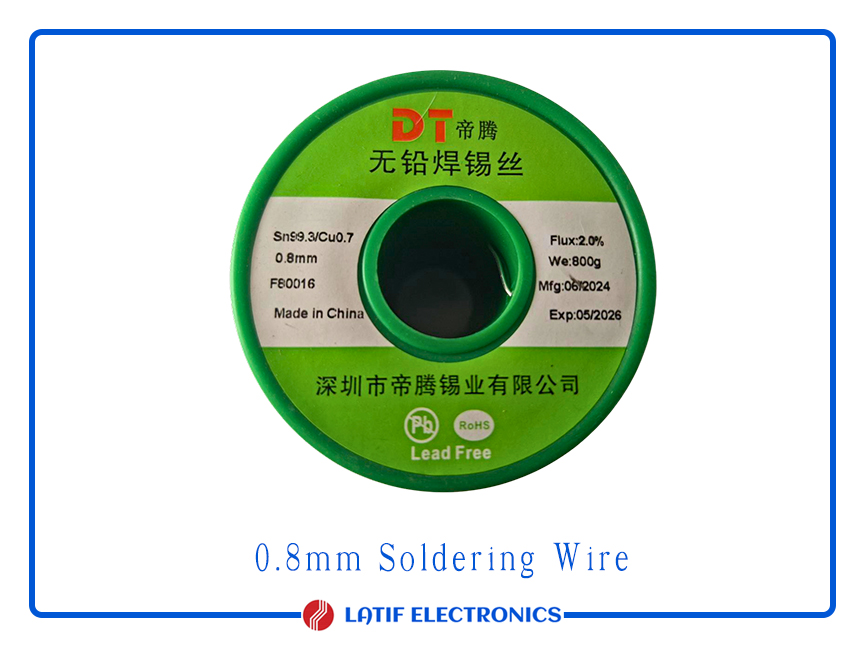 | سلك لحام عالي الجودة يحتوي على Sn99.3 وCu0.7 بقطر 0.8 مم، السلك المعزز بمساعد الصهر 2% يجعل اللحام مثاليًا و خالي من الرصاص بشكل تام