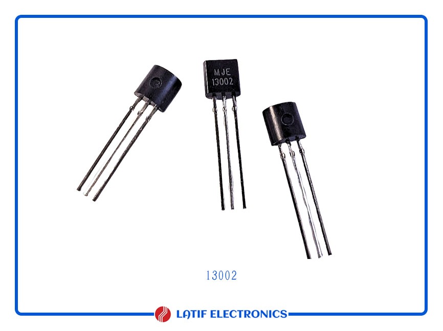 ترانزستور سيليكون 13002  NPN للتقطيع عالي الجهد وعالي السرعة, جهد التشغيل 400فولت بين الجامع والباعث 0.8 أمبير مصمم للاستخدام في دوائر التقطيع عالي الجهد وعالي السرعة والطاقة في الدائرة الحثية، وهو مناسب بشكل خاص لتطبيقات  التقطيع 115 و220 فولت مثل منظمات الجهد بالتقطيع والعاكسات ومحولات DC-DC. العبوة TO-92.