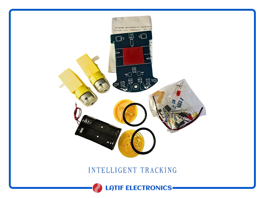 تتضمن مجموعة التتبع مقاومات ضوئية تكتشف الخط الداكن، ثم تُشغّل عجلات المحرك للتحرك للأمام.