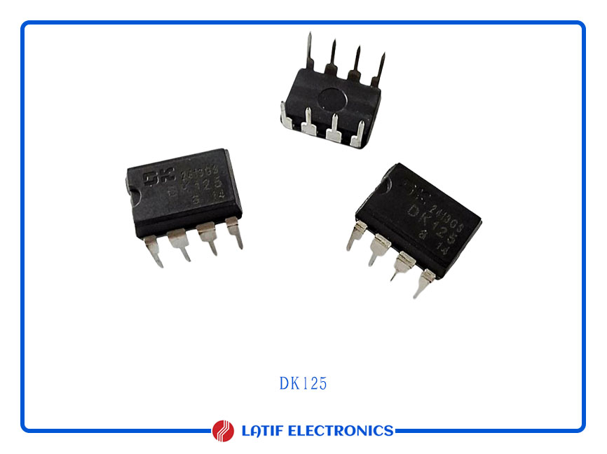 The DK125 is an offline switch-mode power supply (SMPS) controller IC designed for low-power applications. It integrates a high-voltage power MOSFET and a PWM controller, making it ideal for compact and efficient power conversion designs. The IC operates directly from the AC mains (85V to 265V AC) without the need for an external high-voltage component. It includes features such as over-current protection, over-voltage protection, and thermal shutdown, ensuring reliable and safe operation. The DK125 is commonly used in applications like phone chargers, adapters, and small power supplies due to its simplicity, cost-effectiveness, and built-in protections. Package DIP-8.