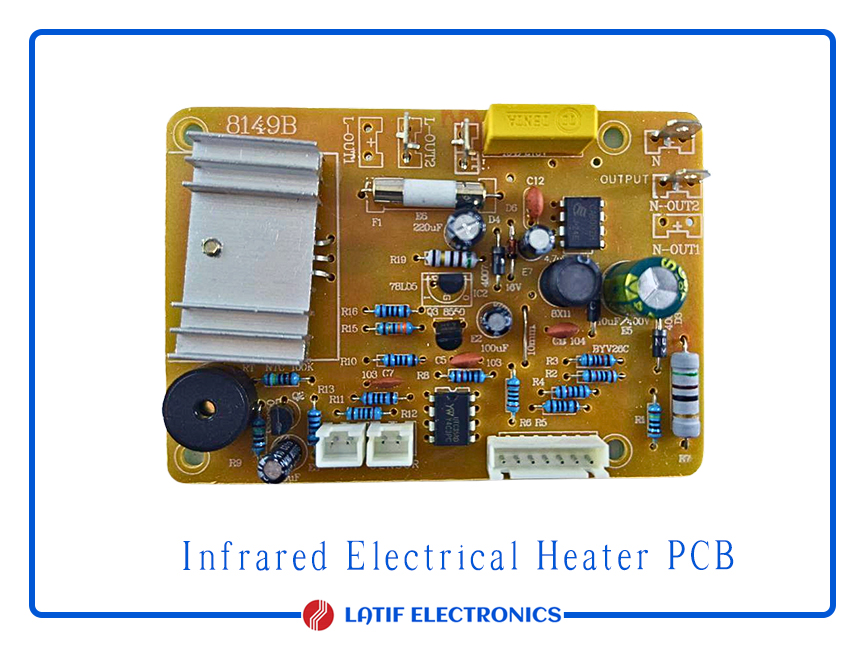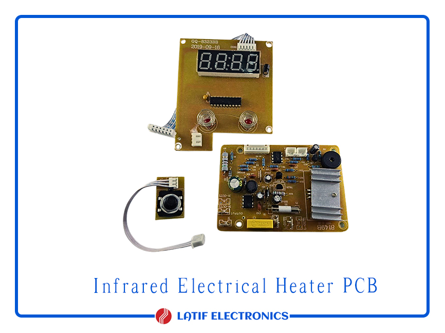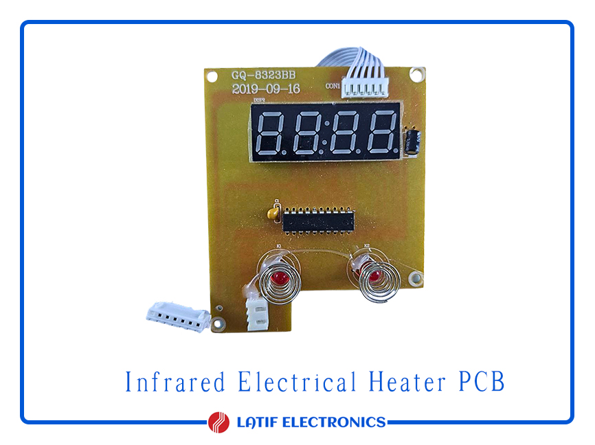تحتوي هذه اللوحة الإلكترونية (PCB) على مقبض دوّار لضبط مستوى التسخين، وزرين يعملان باللمس للتشغيل/الإيقاف والاختيار. كما يوجد شاشة LED لعرض الوظائف ومستوى الحرارة. تعمل الوحدة على جهد 220 فولت وبقدرة 2000 واط.