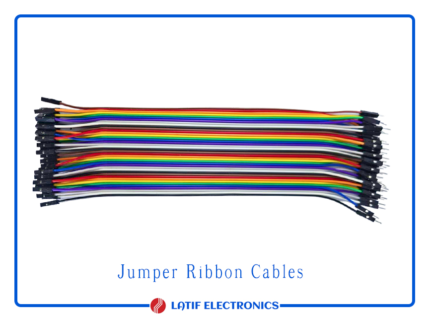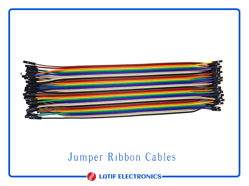 Jumper ribbon cables are essential components for connecting different electronic modules, sensors, and circuits in prototyping and DIY projects. These cables come in a 40-pin bundle, which is multi-colored to help easily distinguish connections. they offer versatility in connecting a wide range of hardware, such as breadboards, microcontroller boards (like Arduino or Raspberry Pi), and other peripherals